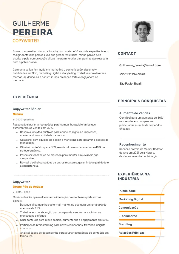 - Selecione experiências que sejam diretamente relevantes para a posição de copywriter.