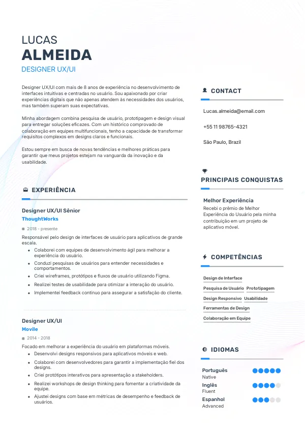 - Selecione apenas as experiências e habilidades que são relevantes para a função de Designer UX/UI.