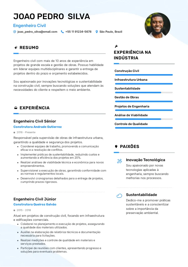 Um currículo bem estruturado e livre de erros é vital para se destacar em um mercado competitivo como o de engenharia civil no Brasil.