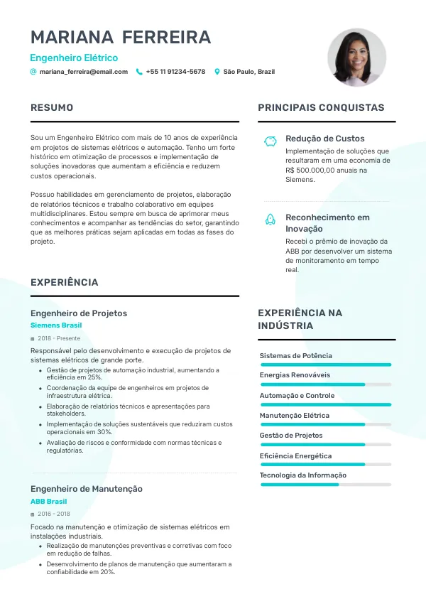 - Melhor: "Engenheiro Elétrico com 5 anos de experiência em projetos de energia renovável."