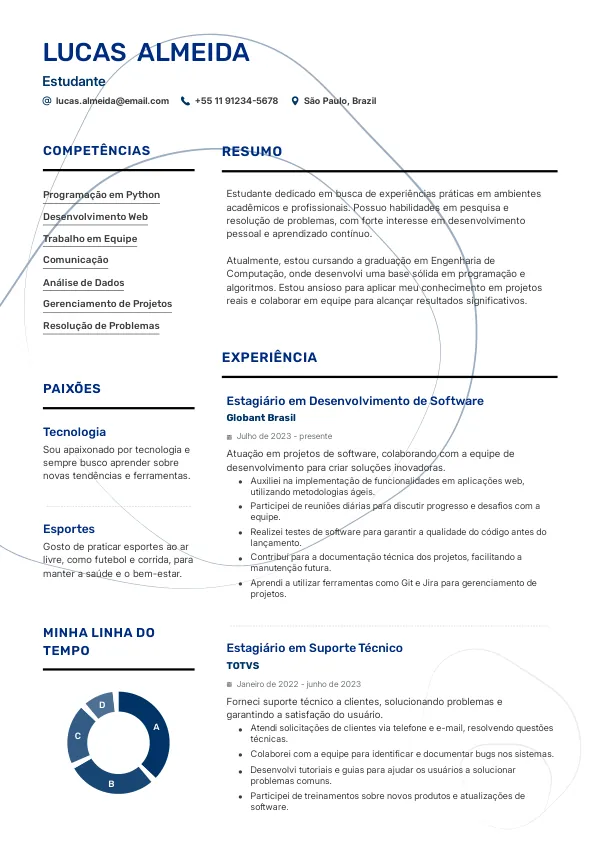 - Inclua detalhes sobre seu curso, projetos e qualquer experiência relevante.