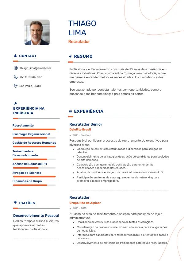 - Melhor: "Recrutador com 5 anos de experiência em sourcing de talentos em tecnologia."
