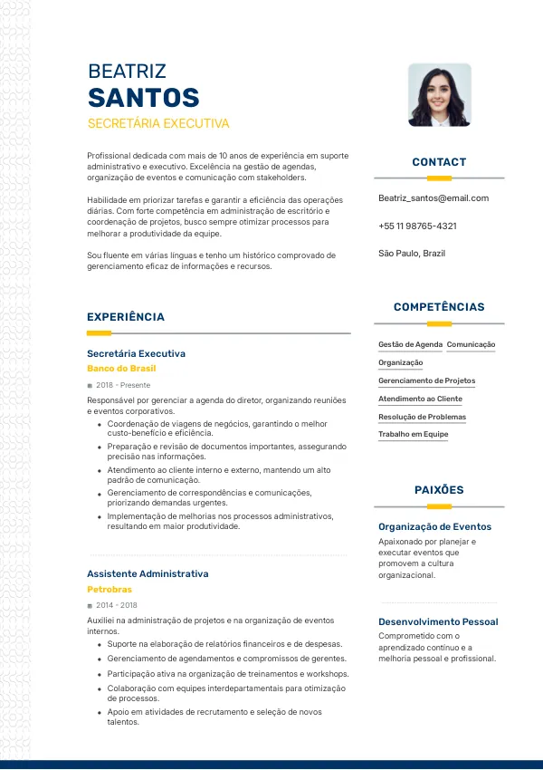 - Melhor: "Gerenciei a agenda de um executivo, resultando em um aumento de 30% na eficiência do tempo."