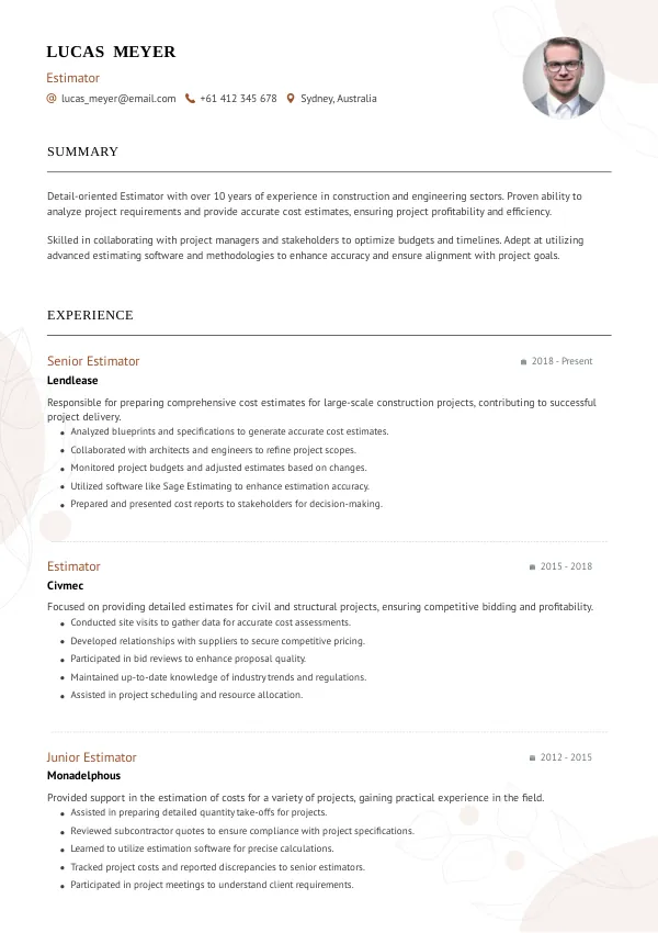 - Tailor your resume to highlight experiences directly related to estimating.