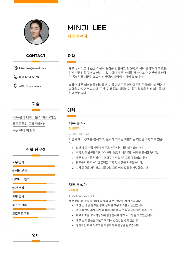 재무 분석가 이력서에서 가장 중요한 요소는 무엇인가요?