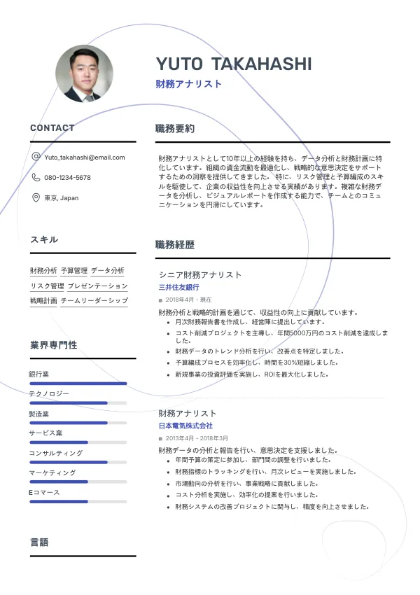 特定のキーワードが不足していると、ATSにスクリーニングされる際に見落とされる可能性があります。財務アナリストに関連するスキルや用語を必ず含めましょう。