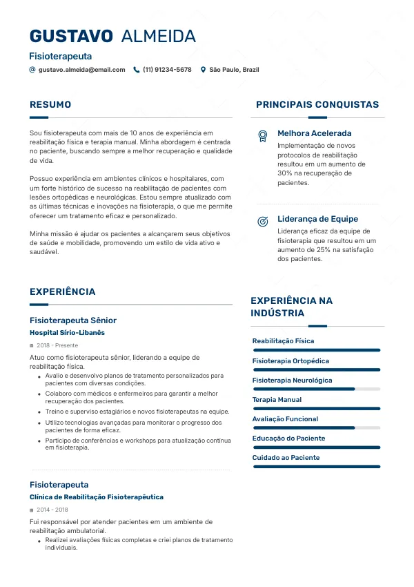- Melhor: "Desenvolvi planos de tratamento personalizados que melhoraram a mobilidade dos pacientes."