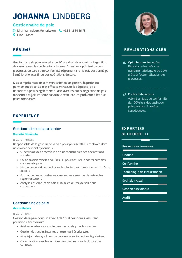 - Mieux: “Réduction des erreurs de paie de 30% en optimisant les processus.”