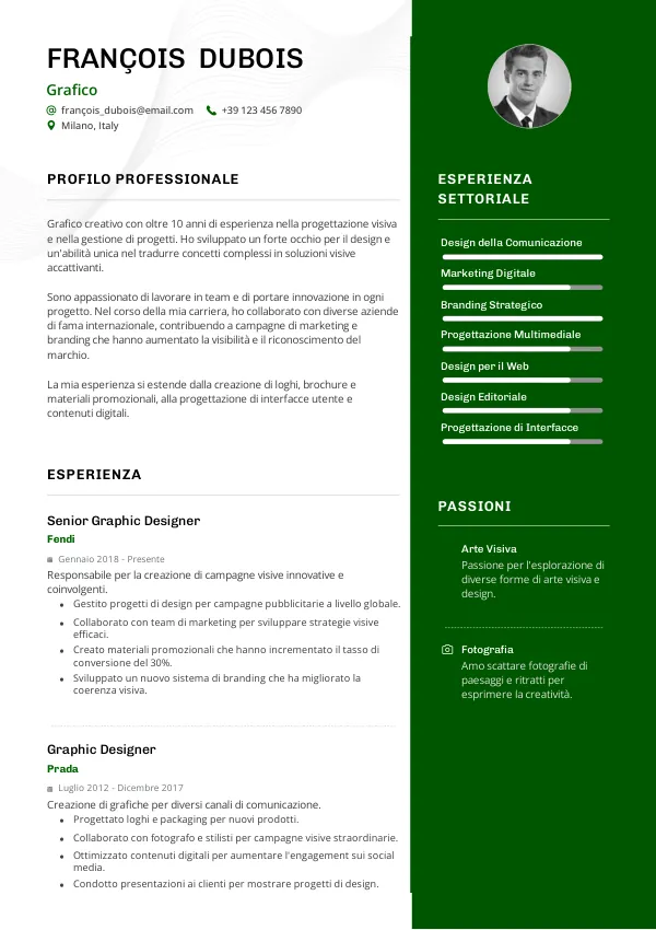 - Focalizzati sulle esperienze più rilevanti per il ruolo di grafico.