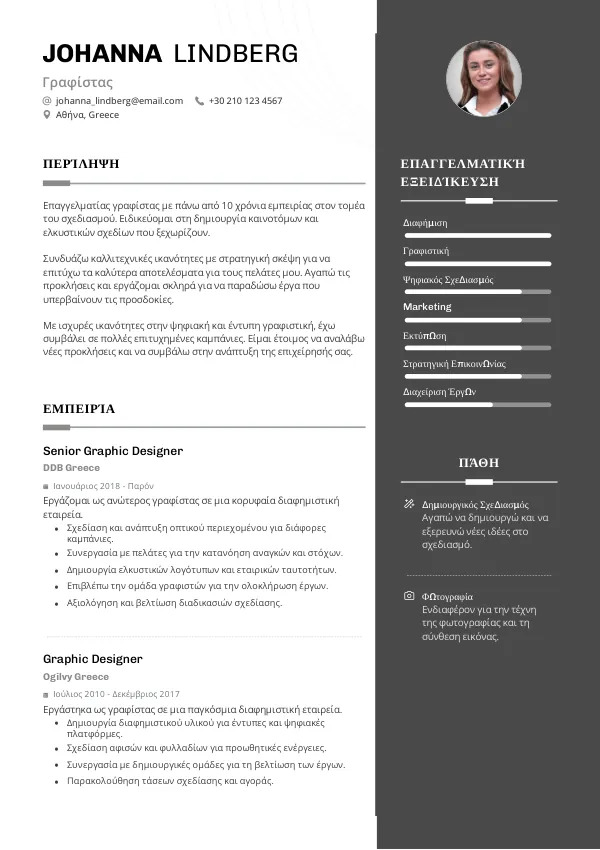 Ποια είναι τα βασικά στοιχεία σε ένα βιογραφικό Γραφίστα;
