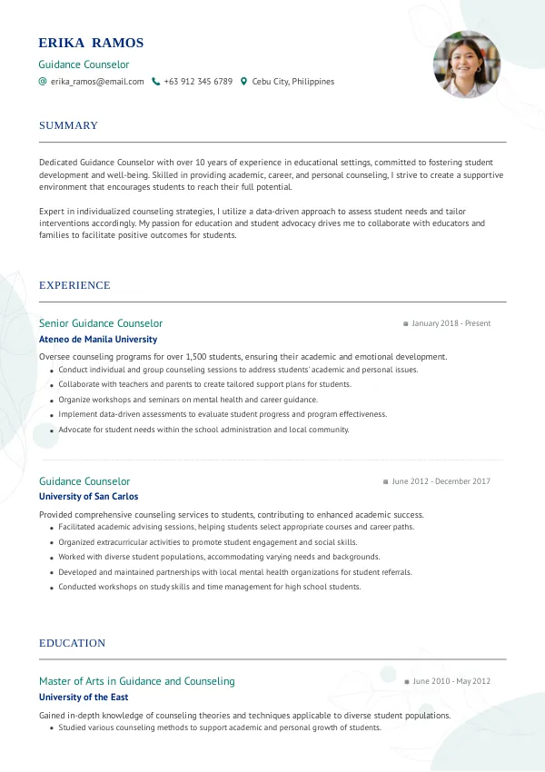 - Showcase a balance of hard and soft skills relevant to the guidance counselor role.