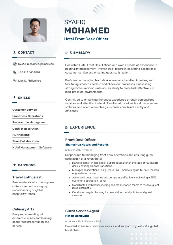 Recruiters in the Philippines look for resumes that are clear, concise, and tailored to the Hotel Front Desk Officer role. They often use Applicant Tracking Systems (ATS) to filter candidates based on relevant keywords and formatting. Many candidates are unaware of the nuances that can lead to rejection, which is why an external review can be invaluable.