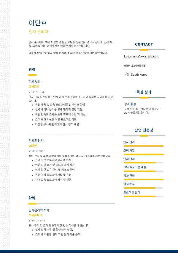 - 나쁜 예: "인사부서에서 일했습니다."