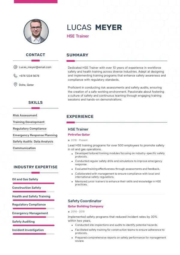 - Better: "Dedicated HSE Trainer with a proven record in reducing workplace incidents, seeking to enhance safety standards at a leading Qatari firm."