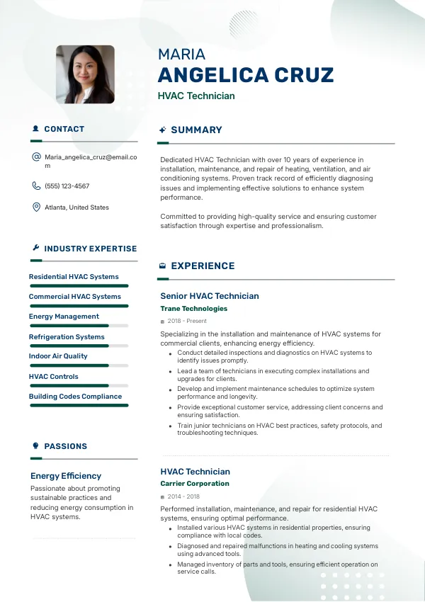 - Avoid irrelevant information and focus on HVAC-specific skills.