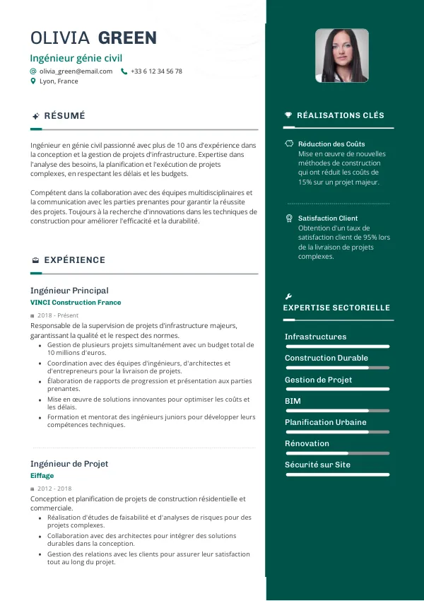 - Mieux : Inclure des mots-clés comme “gestion de projet”, “design structurel”, “normes de sécurité”.
