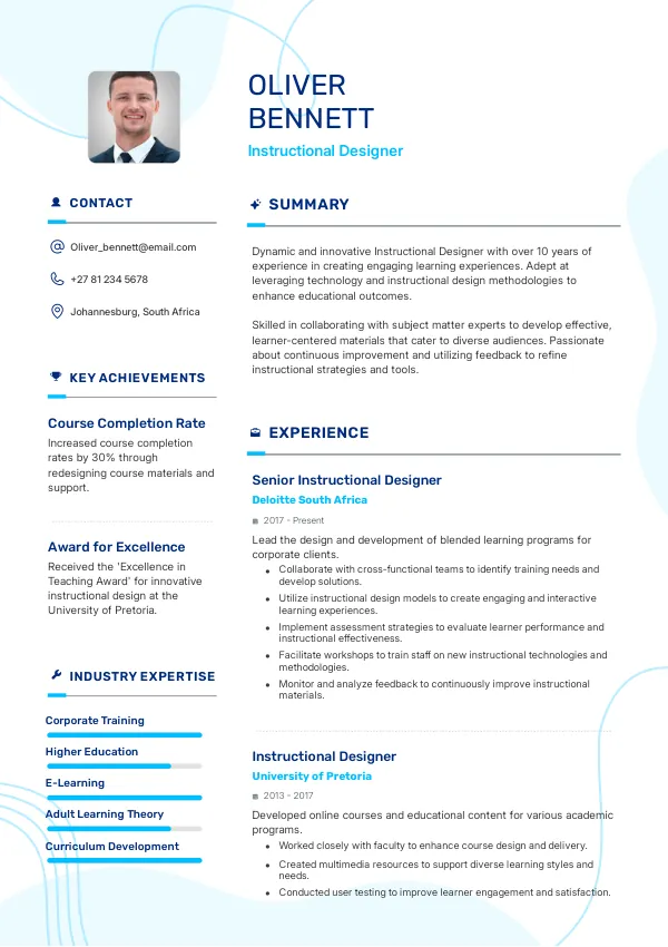 Focus on relevant experience, skills, and quantifiable achievements related to Instructional Design.