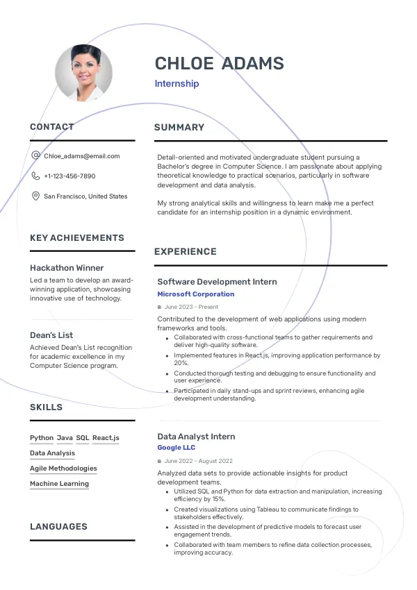 - Highlight both technical skills and soft skills relevant to the internship you're applying for.