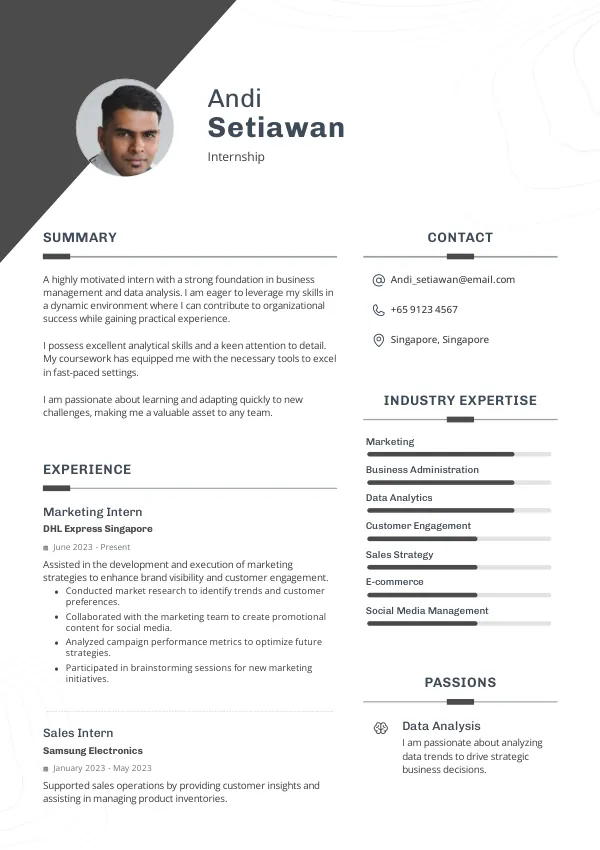Focus on relevant education, skills, and any project experience that aligns with the internship role.