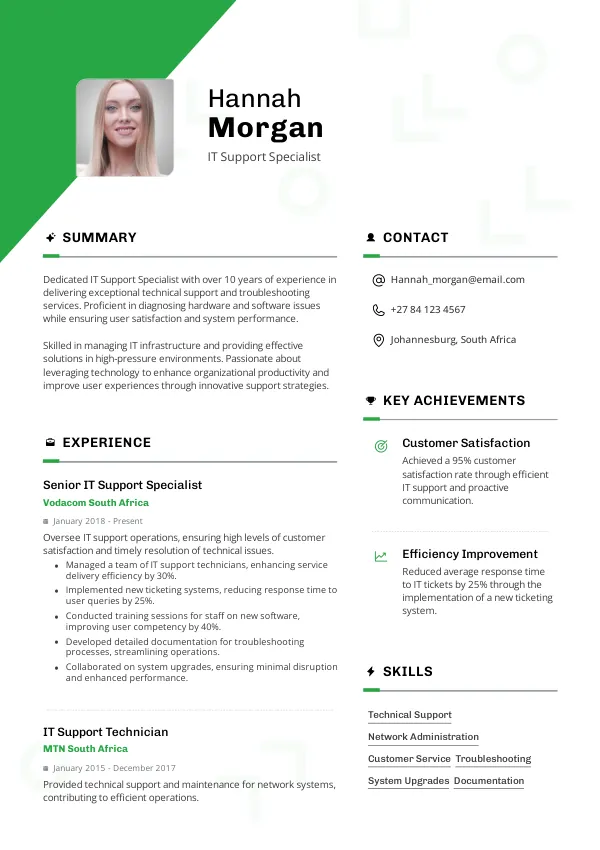 As an IT Support Specialist in South Africa, your resume plays a crucial role in securing interviews. Many candidates make critical mistakes that can lead to rejection, often without realizing it. By reviewing your resume, you can avoid common pitfalls and increase your chances of being shortlisted.