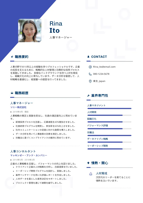 日本では履歴書に写真を添付することが一般的です。ビジネスに合った写真を使用してください。