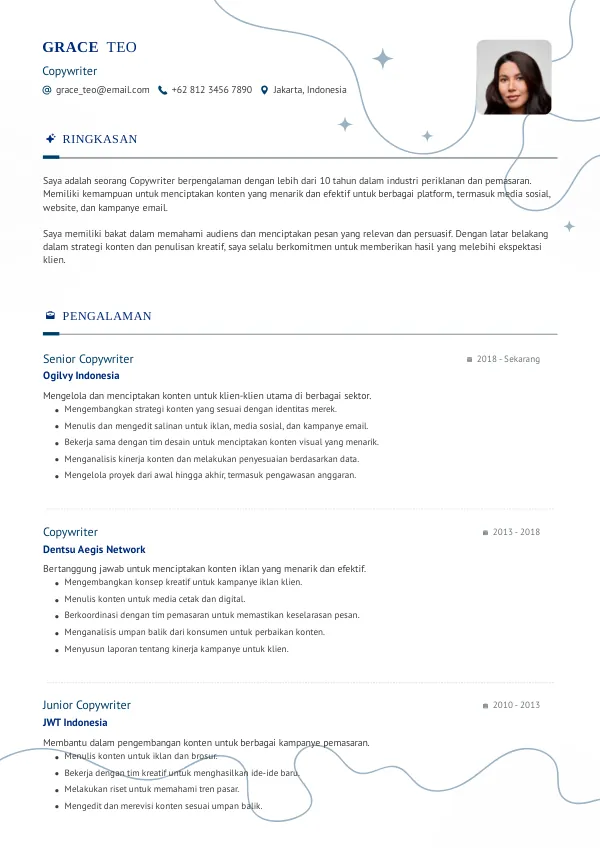 - Lebih Baik: "Resume ini disesuaikan untuk posisi copywriter di Perusahaan X."
