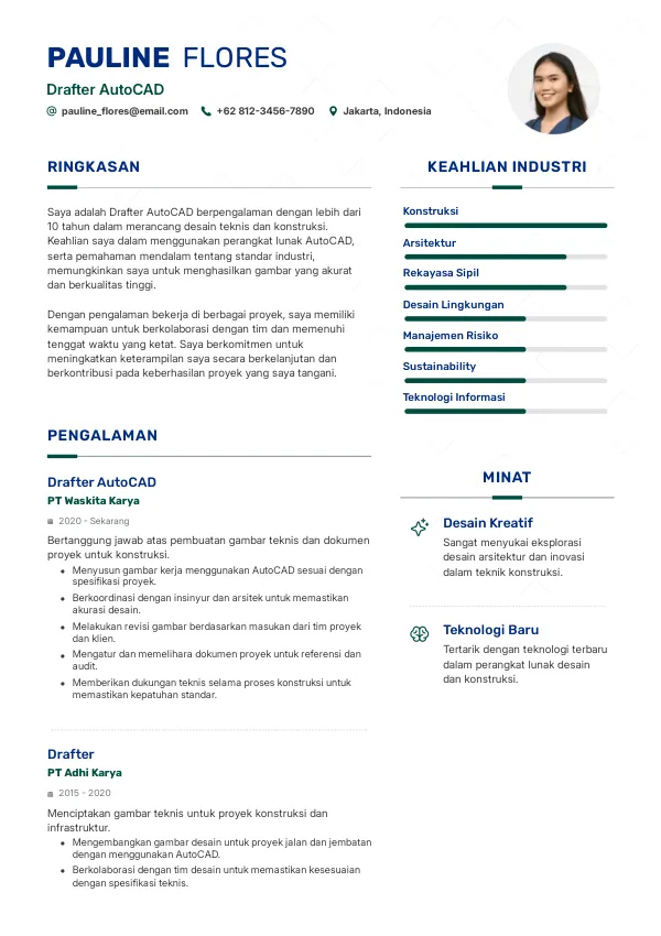 - Lebih Baik: Fokus pada pengalaman yang berkaitan langsung dengan posisi Drafter AutoCAD.