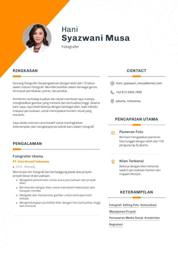 Resume sebaiknya tidak lebih dari dua halaman, terutama untuk fotografer.
