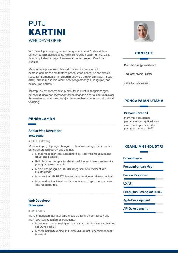 - Lebih Baik: Menekankan proyek atau pengalaman yang relevan dengan posisi Web Developer.