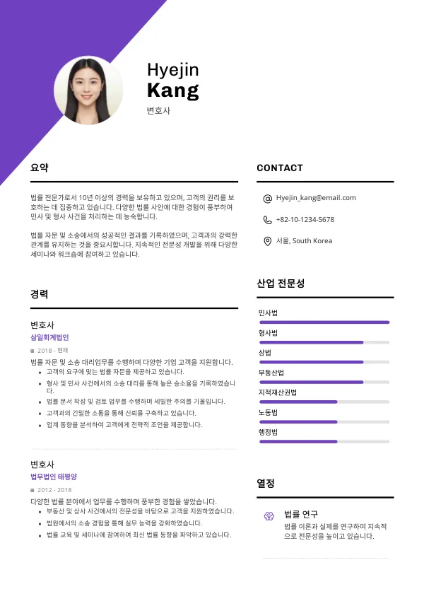 중급 변호사는 전문성을 강조해야 하지만, 구체적인 사례나 성과를 명확히 제시하지 않으면 이력서가 평범해질 수 있습니다.