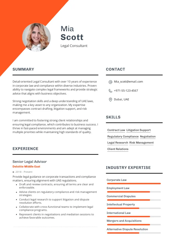 Senior candidates should demonstrate strategic vision and influence. Highlight your leadership in projects and your understanding of the legal landscape in the UAE.