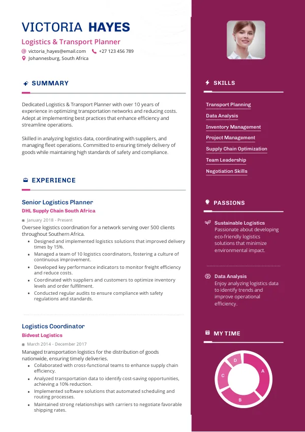 Include relevant experience, key skills, and certifications specific to logistics and transport planning.