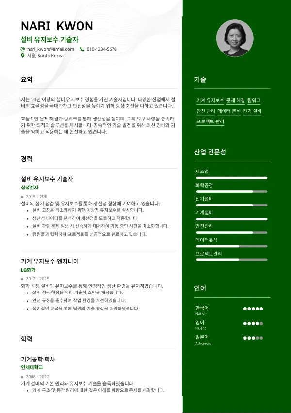 설비 유지보수 기술자의 이력서에서 중요한 것은 무엇인가요?