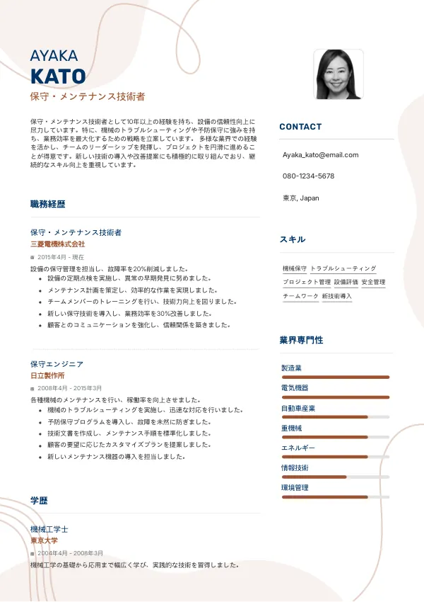 保守・メンテナンス技術者は、技術的なスキルと経験が重要視される職種です。しかし、履歴書における小さなミスが、面接のチャンスを失わせることがあります。履歴書を見直すことで、こうしたミスを避けることができるため、早めに確認することをお勧めします。