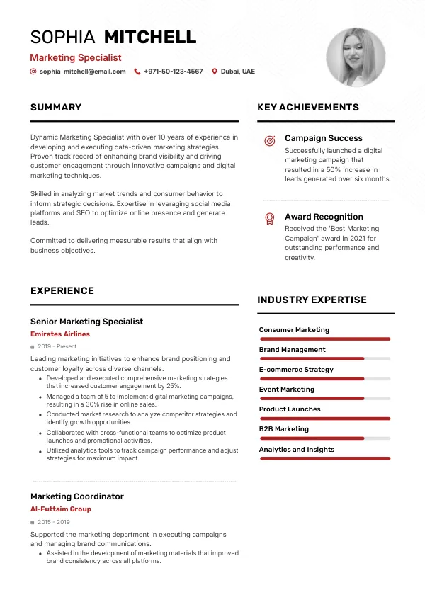 - Research current marketing trends in the UAE and reflect them in your resume.