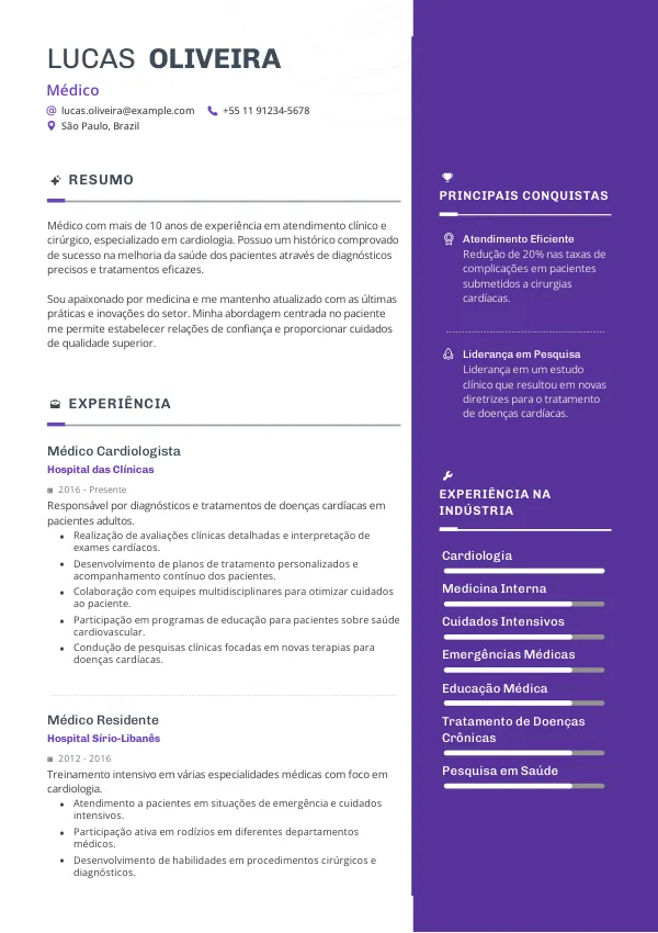 Para médicos seniores, é importante mostrar liderança e gestão. Destacar projetos de melhoria e resultados obtidos pode ser um diferencial importante.