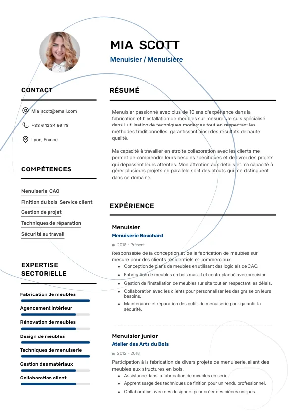 Les recruteurs cherchent des expériences directement liées au poste de Menuisier.