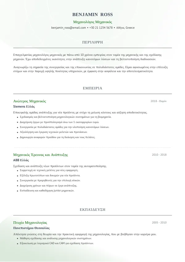 - Δημιουργήστε ξεκάθαρες ενότητες όπως «Εκπαίδευση», «Εργασιακή Εμπειρία» και «Δεξιότητες».