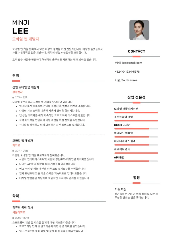 모바일 앱 개발자 이력서 실수