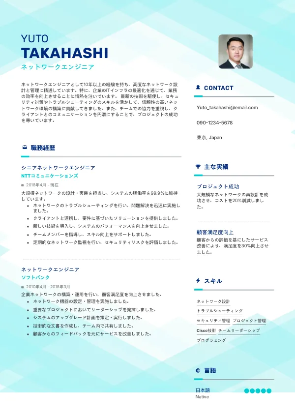 ネットワークエンジニア向けの履歴書のテンプレートはありますか?