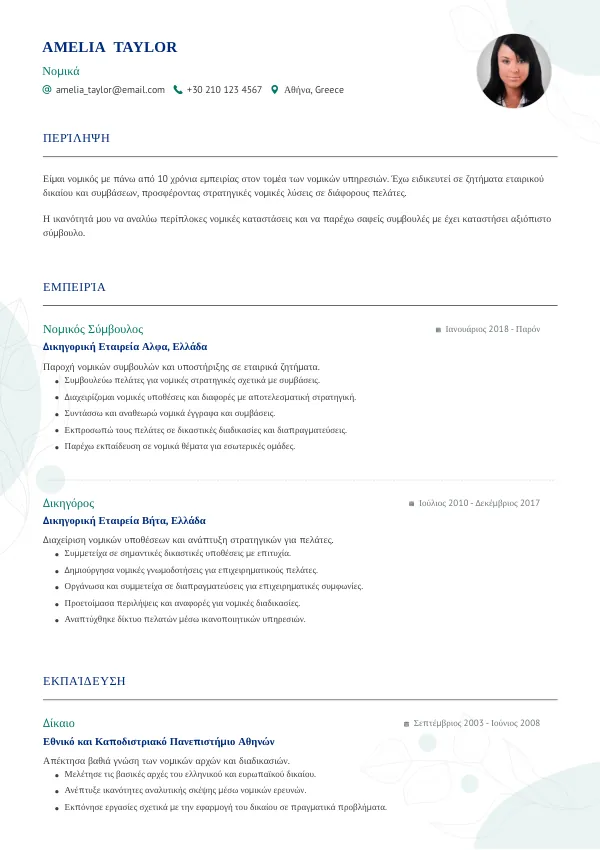 - Κακό: "Έχω εμπειρία σε πολλά νομικά θέματα."