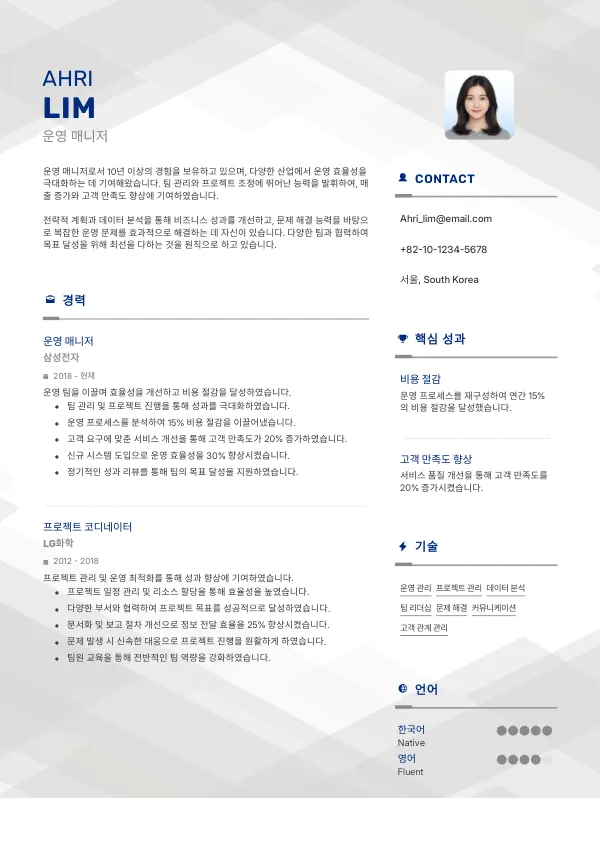 - 좋음: 프로젝트 관리, 팀 리더십, 성과 개선을 포함했습니다.