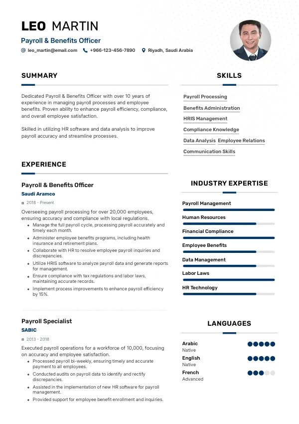 Recruiters and ATS systems in Saudi Arabia rigorously evaluate resumes for Payroll & Benefits Officer positions. They look for specific keywords, clear formatting, and relevant experiences that align with the job description. Unfortunately, many candidates overlook mistakes that can lead to automatic disqualification. An external review can help identify these issues before you submit your application.