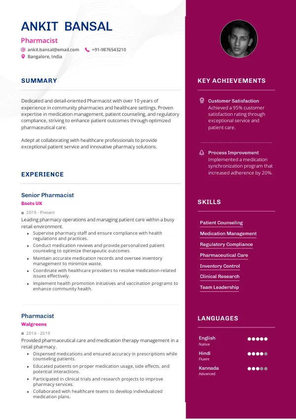 - Better: “Worked at XYZ Pharmacy as a staff pharmacist, managing a team and improving patient satisfaction rates by 20%.”