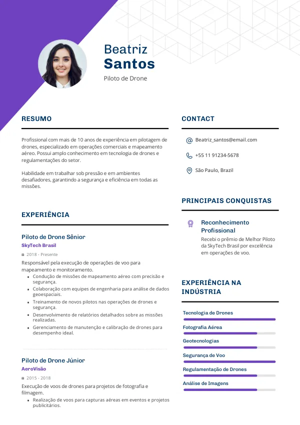 - Concentre-se em experiências que mostram suas capacidades técnicas e de operação de drones.