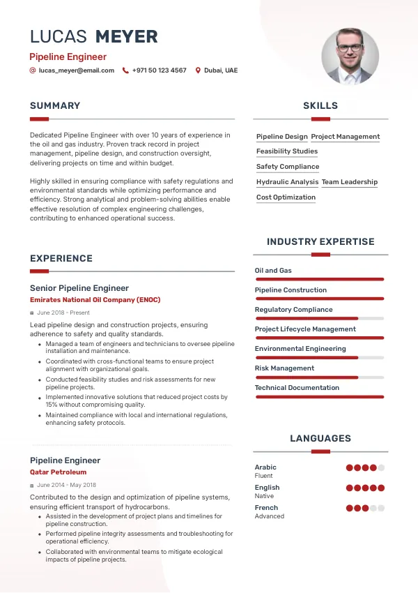 Ensure your CV meets local norms and expectations for pipeline engineers.