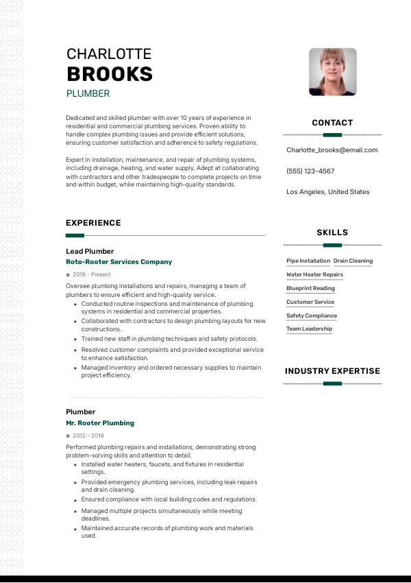 - Focus on relevant plumbing experience and skills.