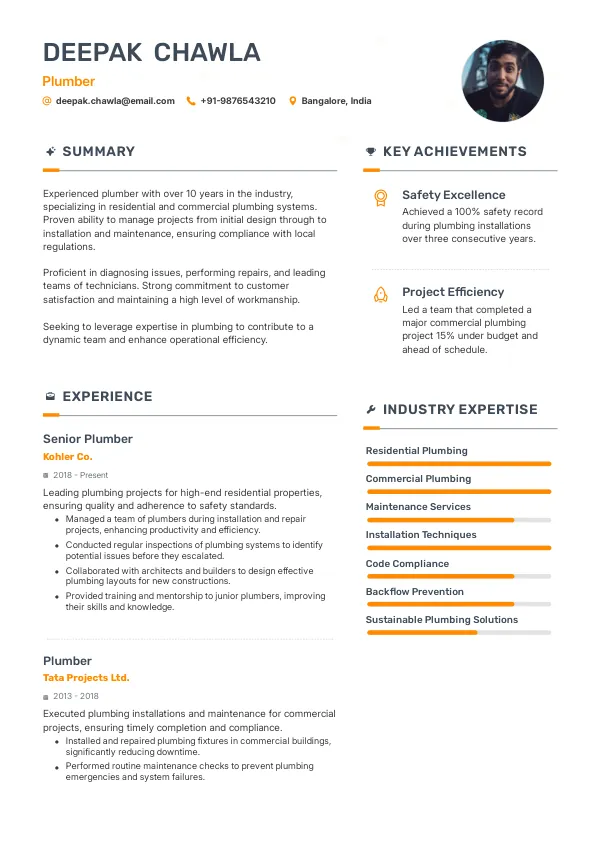 - Highlight local plumbing regulations knowledge.