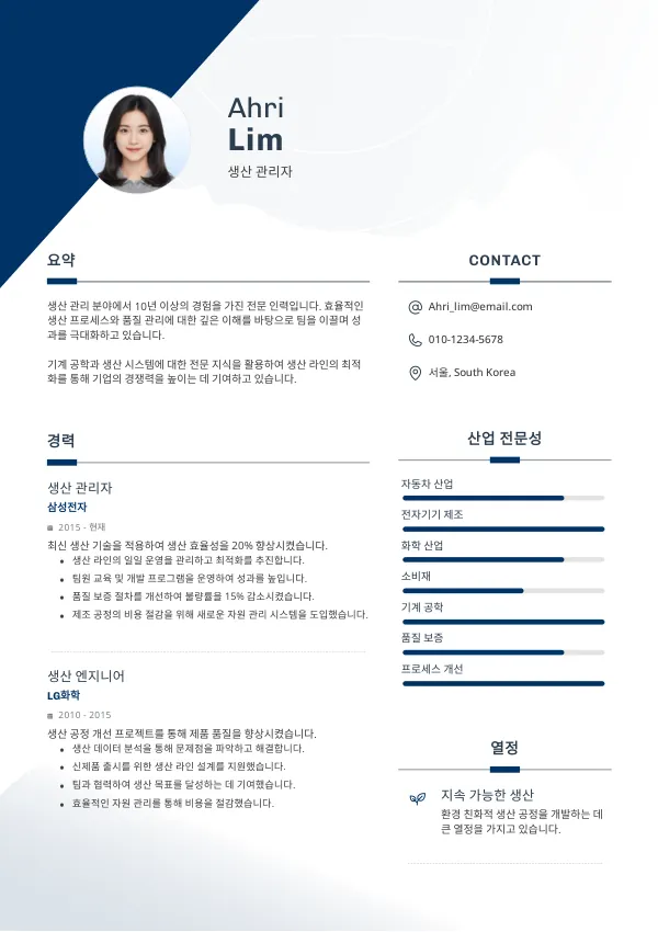 생산 관리자 이력서 실수