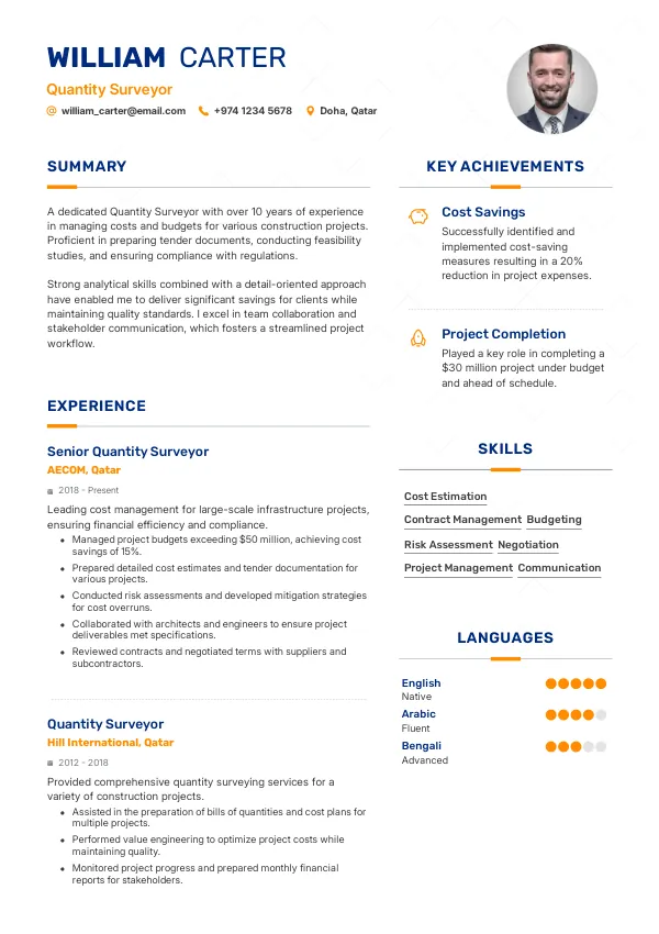 What is the best format for a Quantity Surveyor CV in Qatar?